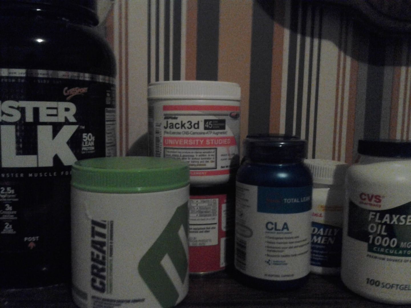 gonna snap a quick pick of my gym supplements so u can see how much of a freak i am rq lol creatine, CLA, pre-creatine/caffeine, whey, amino, no cutting seeing as im done with cutting phase for next month.